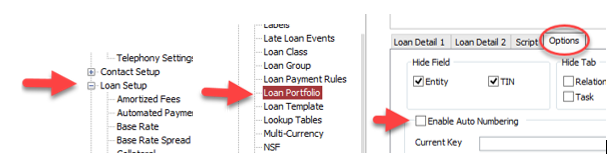 For loans, you can enable auto numbering in global setup under Loan Setup>Loan Portfolio. Go to the Options tab and click on Enable Auto Numbering